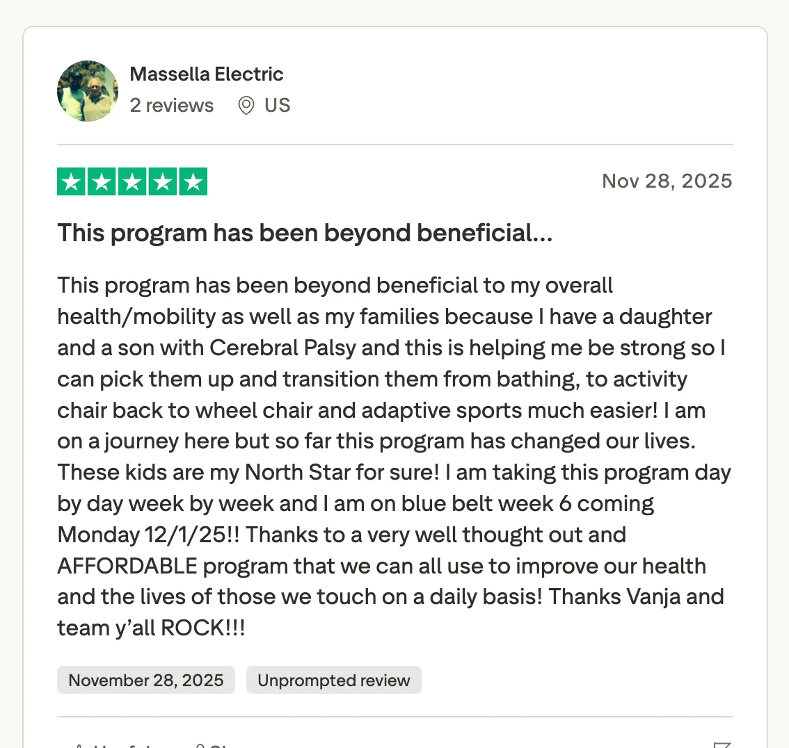 Full mastery. Your body is a tool that works FOR you, not against you. You're not thinking about mobility anymore - you're just living. Playing. Moving. Enjoying life without physical limitations holding you back.